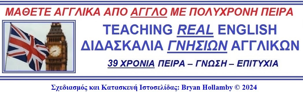 Ο καθηγητής του Teaching REAL English είναι ο Bryan Hollamby (Μπράιαν Χόλαμπυ), Άγγλος υπήκοος που διαμένει στο Κιλκίς από το 1986. Διδάσκει την αγγλική γλώσσα σε παιδιά και ενήλικες εδώ και 39 χρόνια σε φροντιστήρια του Κιλκίς και ως ελεύθερος επαγγελματίας, παραδίδοντας ιδιαίτερα μαθήματα διά ζώσης και διαδικτυακά. Παράλληλα, εδώ και πάνω από 10 χρόνια είναι ο επίσημος καθηγητής αγγλικής γλώσσας της Kleemann Hellas ABΕE, της μεγαλύτερης κατασκευαστικής εταιρίας του Νομού Κιλκίς, η οποία έχει επίσημη γλώσσα της την αγγλική. Ο Bryan μιλάει και άπταιστα ελληνικά.
